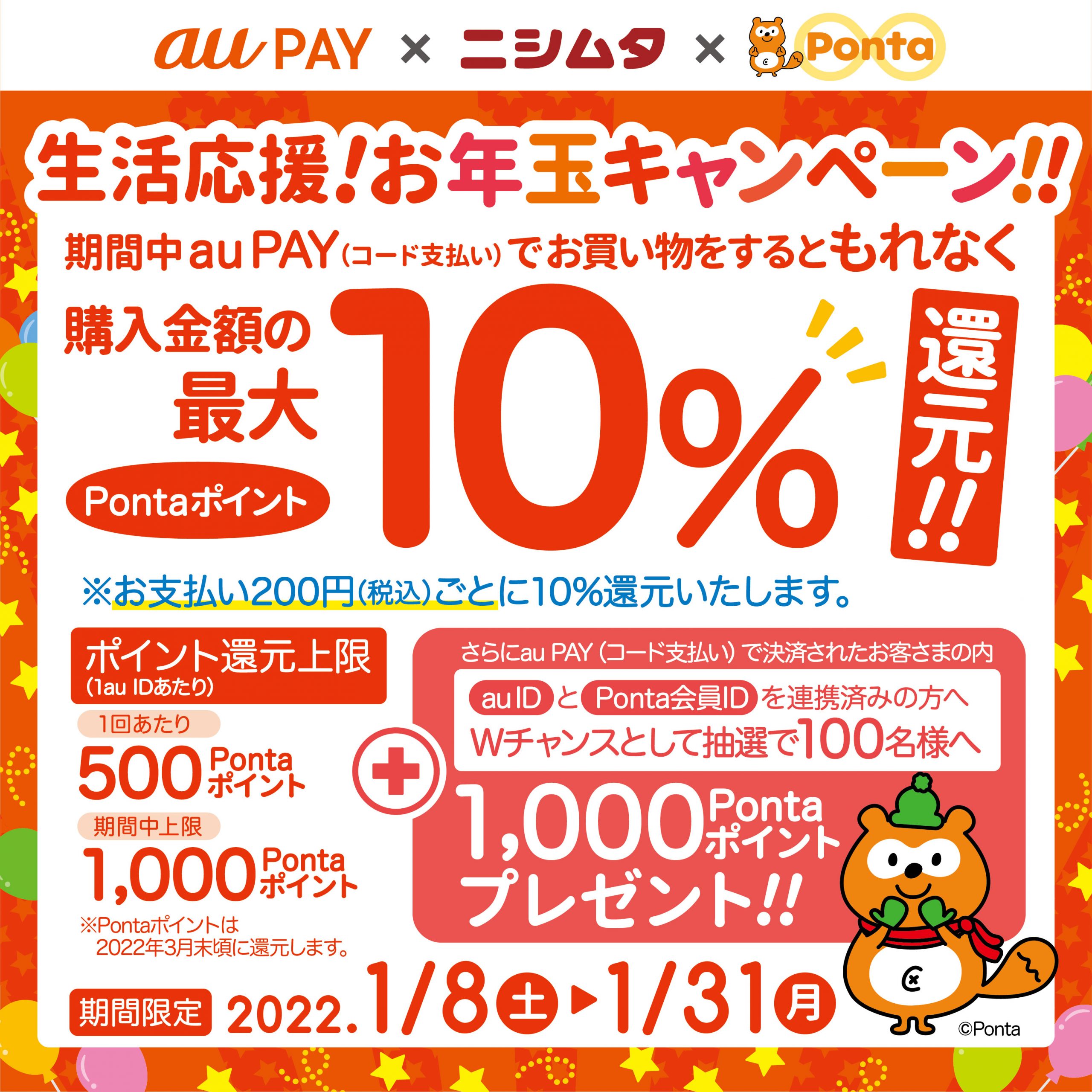 au PAY×ニシムタ×Ponta「生活応援!お年玉キャンペーン!!」