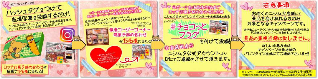 ニシムタ各店舗でバレンタイン特設コーナーを展開中です。
