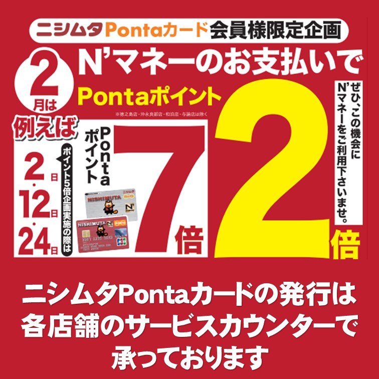 2月はN’マネーのお支払いでPontaポイント2倍!