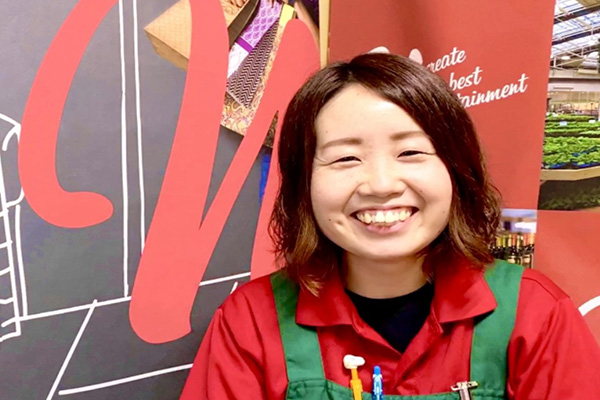 - 現在は副店長として働いています。従業員とコミュニケーションを取りながら指導教育を行い、それが結果としてお客様からお褒めの言葉を頂いた時にやりがいを感じます。