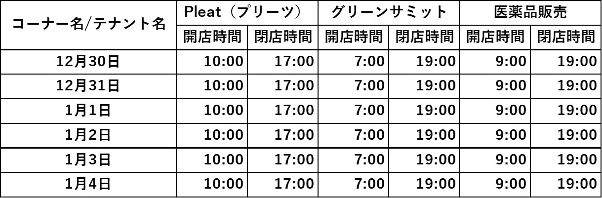 - テナント営業時間