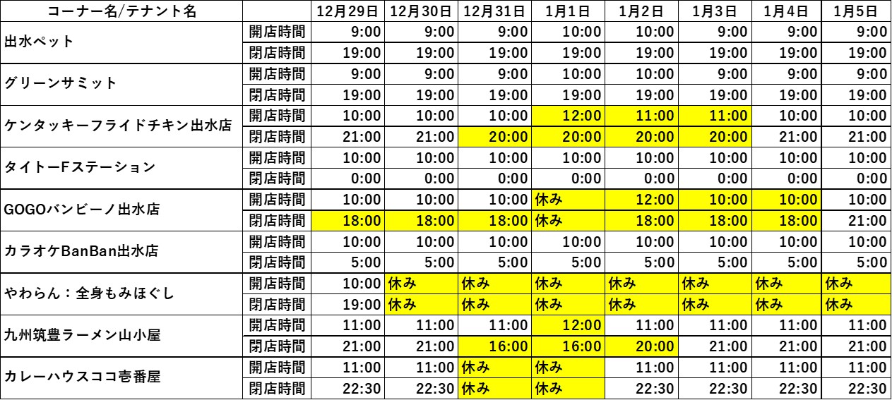 - テナント営業時間