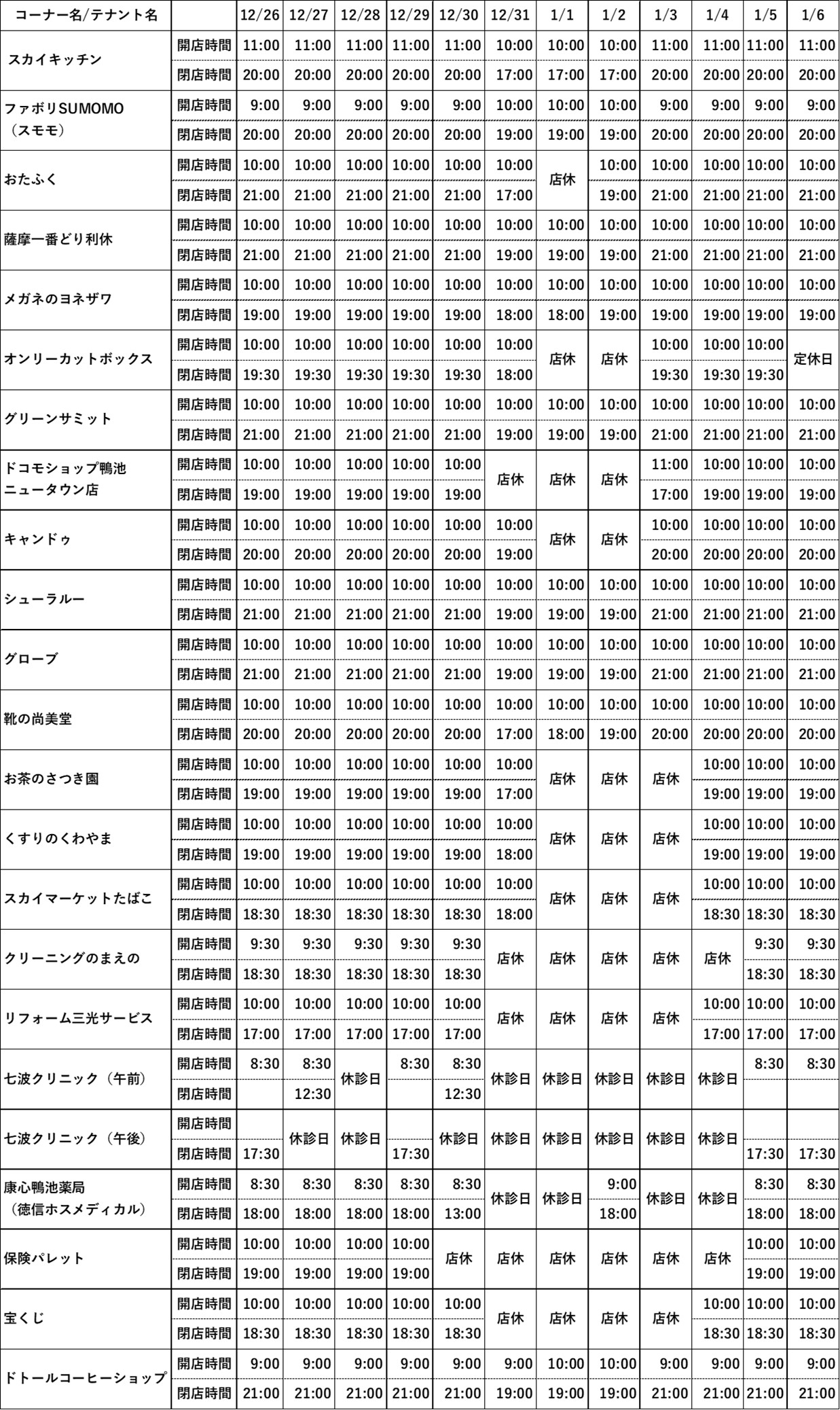 - テナント営業時間