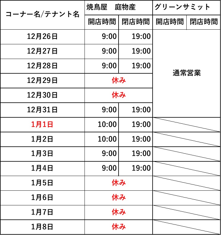 - テナント営業時間